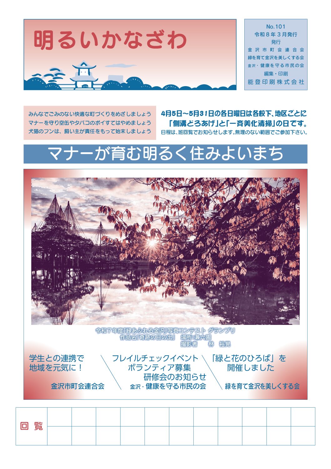 明るいかなざわ101号(令和8年3月発行) 金沢リサイクルニュース(令和7年12月発行) 明るいかなざわ100号(令和7年8月発行) 令和7年度 町会、元気の素 ハンドブック 金沢リサイクルニュース(令和7年6月発行) 明るいかなざわ99号(令和7年3月発行) 金沢リサイクルニュース(令和7年2月発行) 明るいかなざわ98号(令和6年8月発行) 金沢リサイクルニュース(令和6年6月発行)